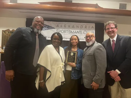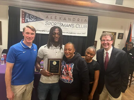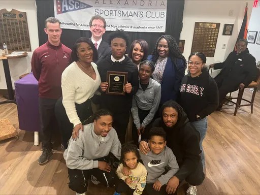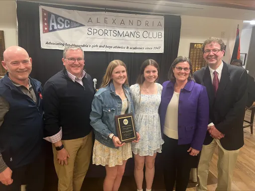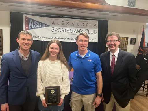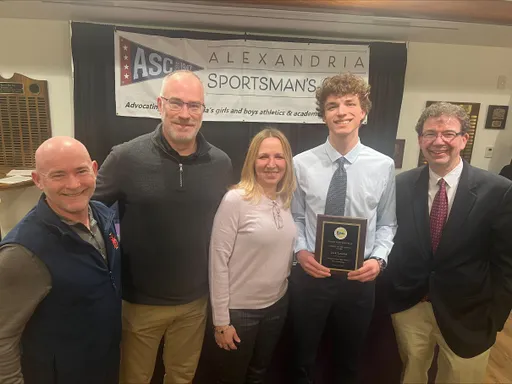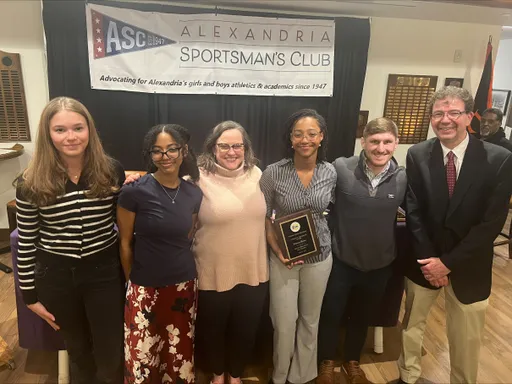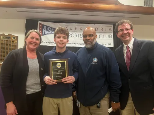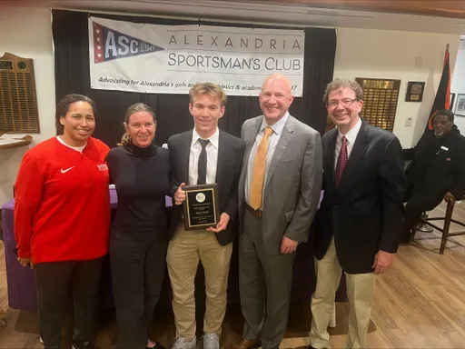Front row (left to right): Ryan Fannon, ASC President; Avery Vanlandingham, Girls Swimming, Bishop Ireton High School; Claire Pantuck, Girls Indoor Track & Field, Alexandria City High School; Madison Hughes, Girls Indoor Track, St. Stephen’s & St. Agnes School; Zion “Ziggy” Allen, Boys Indoor Track & Field, Episcopal High School; Oliver Saltiel, Boys Soccer, St. Stephen’s & St. Agnes School